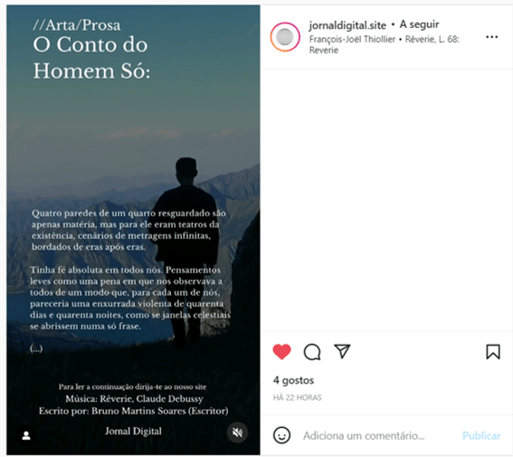 Bruno’s ‘Conto do Homem Só’ (Lonesome Man’s Story), a short story taken from the unpublished short story collection ‘Baltimore de Madrugada’ (Baltimore at Dawn), was published by Jornal Digital. An online publication based in Braga, Portugal, Jornal Digital was created by Pedro Amaral, a Mozambican national, in 2021. ‘Baltimore de Madrugada’ is a collection of some of the best short stories Bruno Martins Soares ever wrote and still hasn’t found a publisher in Portugal. Says Bruno: ‘I will only publish it when the right time and the right opportunity come along.’